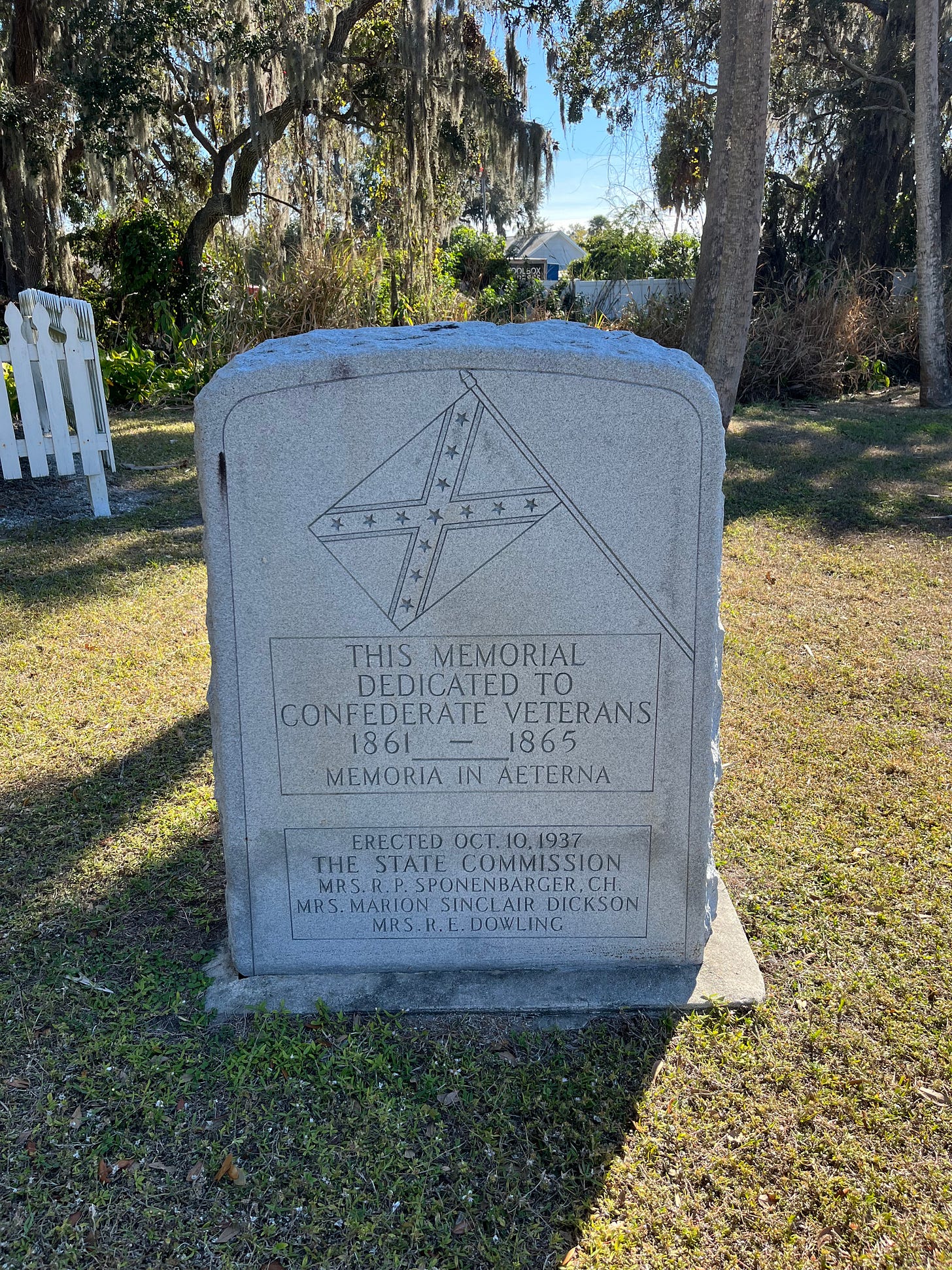 There is an interesting state park just north of Bradenton, FL on the Manatee River. It mostly is a former plantation built in the 1840s, abandoned in the 1850s, reoccupied by Confederate forces, used by a Confederate cabinet member to escape to Britain, abandoned again, and eventually turned into a war memorial by the Daughters of the Confederacy.